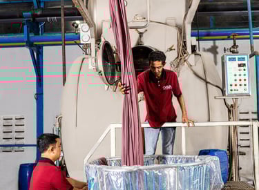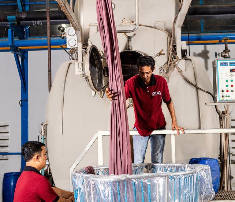 Kami memadukan teknologi pencelupan mutakhir dengan praktik berkelanjutan. Hasilnya adalah warna kain yang cerah dan tahan lama, diproses dengan cara yang bertanggung jawab terhadap lingkungan.